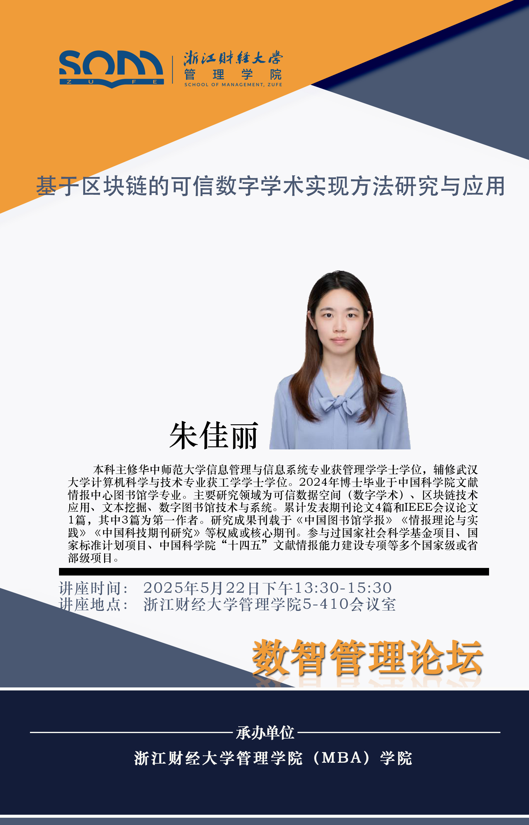 伟德国际1946新财经战略系列学术活动2025年第40期【学术报告】朱佳丽:基于区块链的可信数字学术实现方法研究与应用