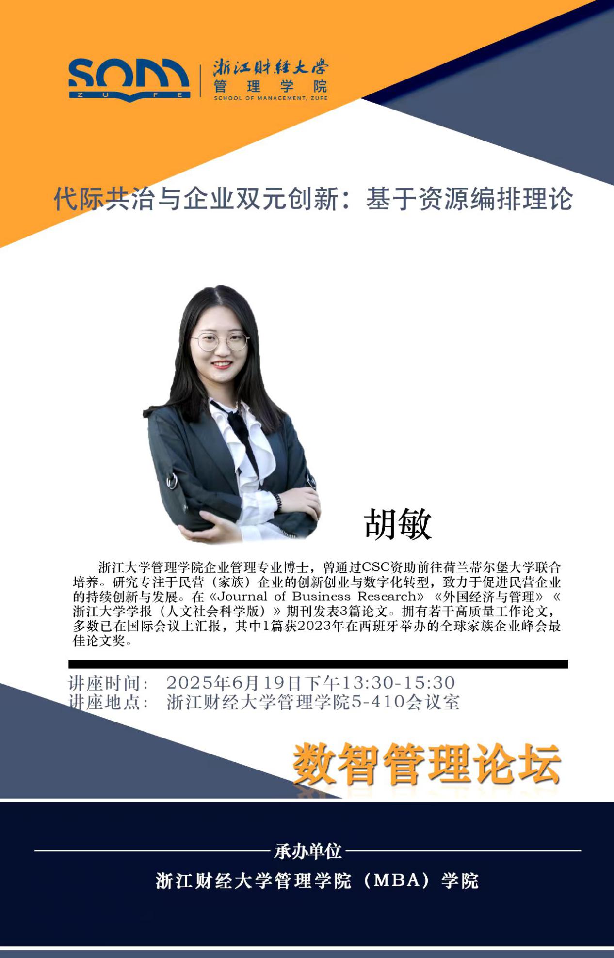 伟德国际1946新财经战略系列学术活动2025年第45期【学术报告】胡敏:代际共治与企业双元创新:基于资源编排理论