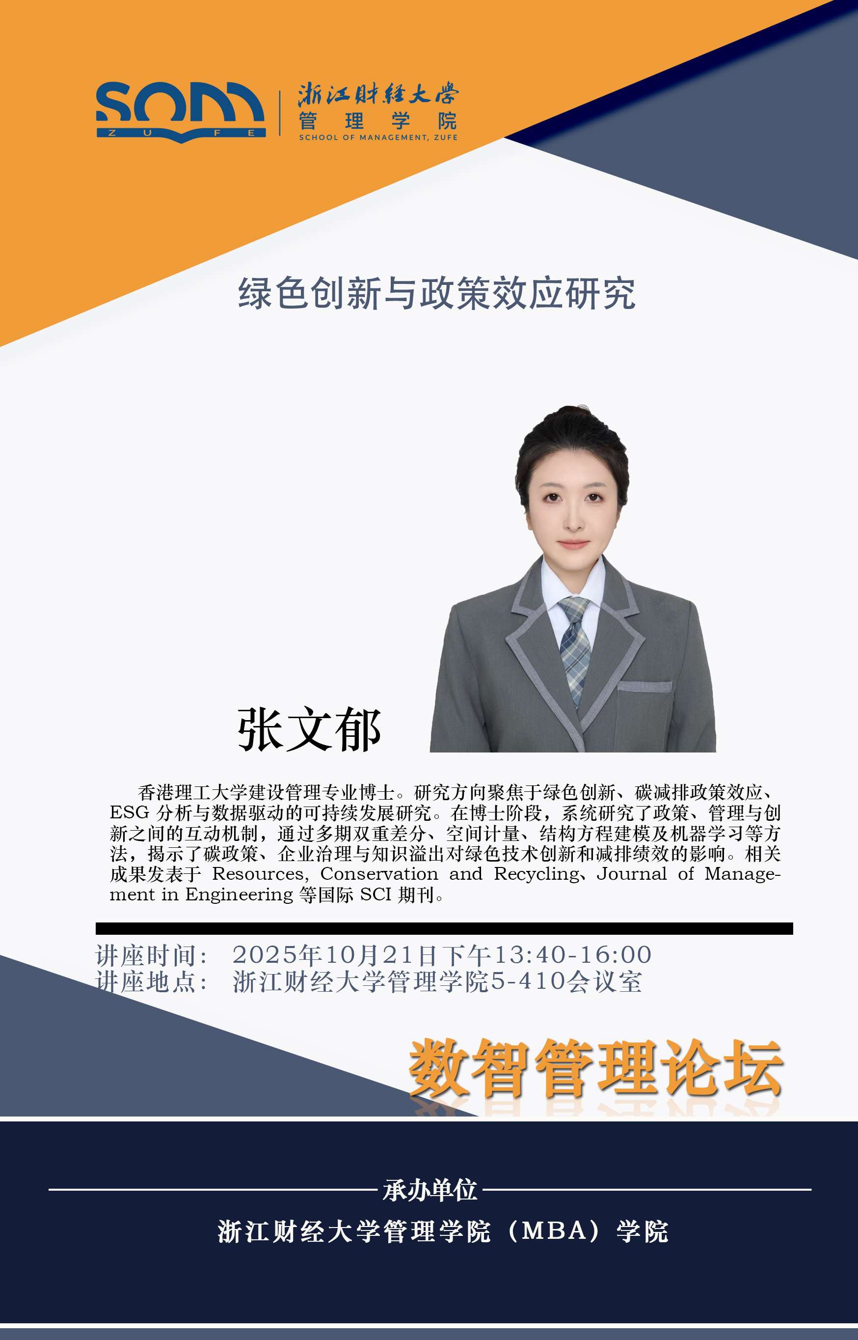 伟德国际1946新财经战略系列学术活动2025年第51期【学术报告】张文郁:绿色创新与政策效应研究
