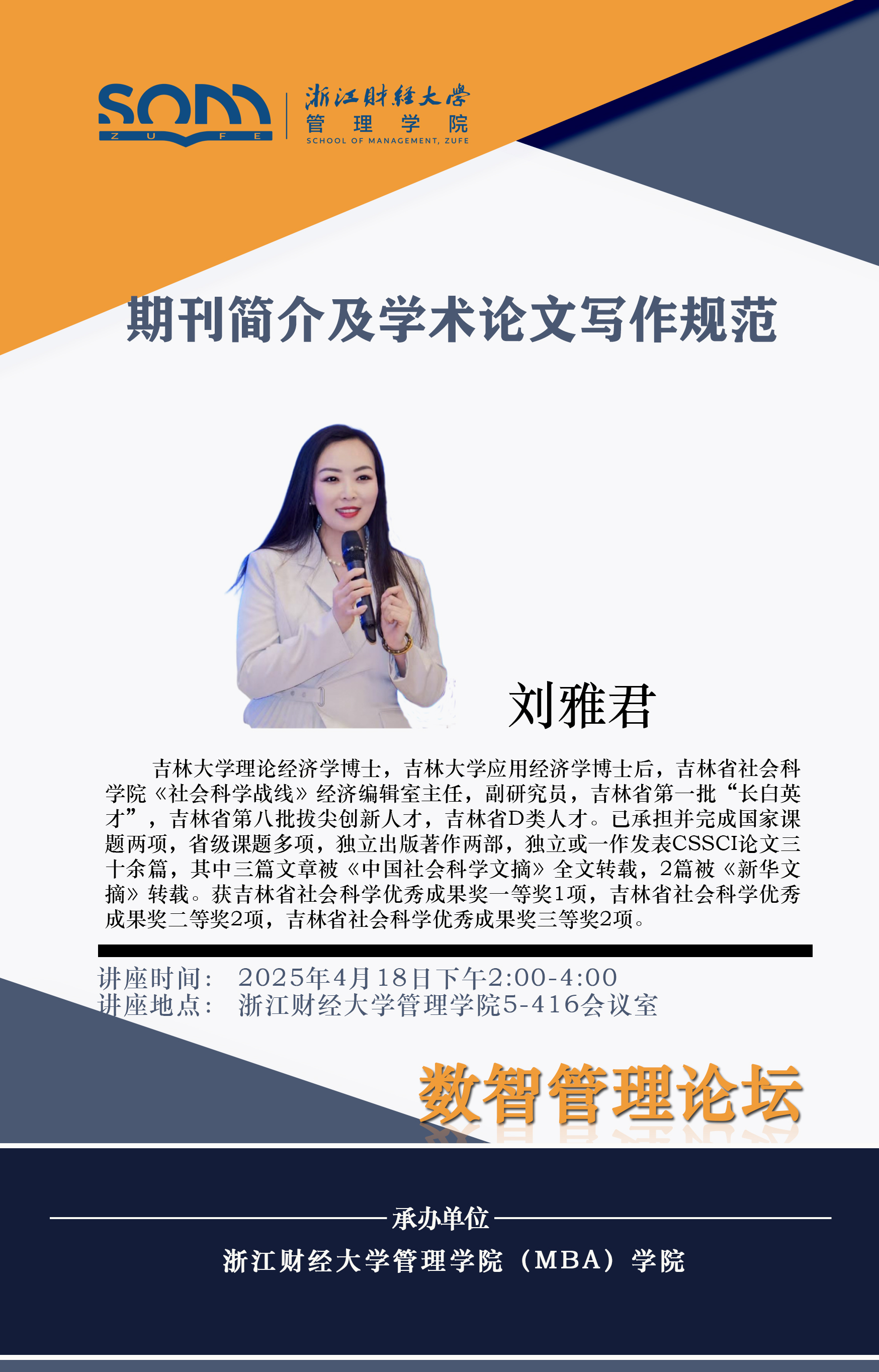 伟德国际1946新财经战略系列学术活动2025年第15期【学术报告】刘雅君:期刊简介及学术论文写作规范