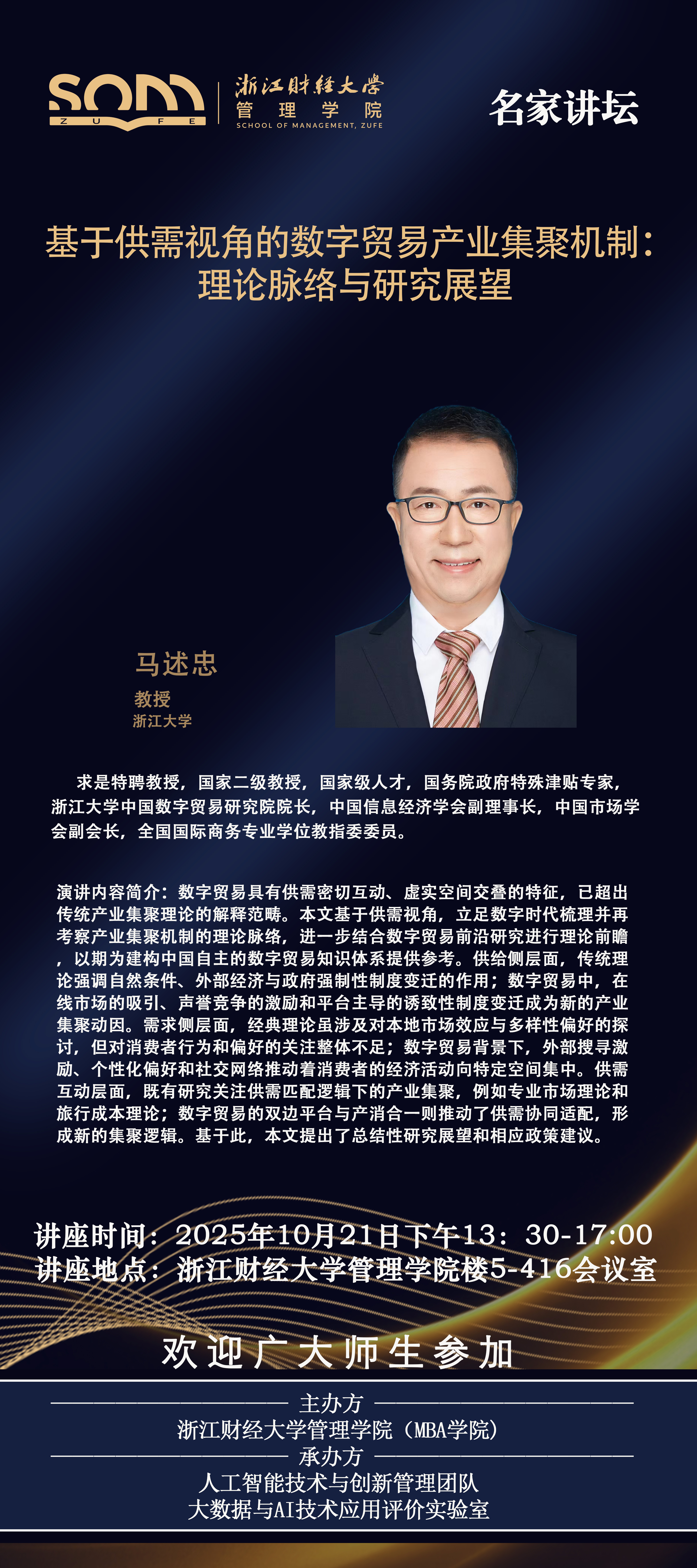 伟德国际1946新财经战略系列学术活动2025年第49期【名家讲坛】马述忠:基于供需视角的数字贸易产业集聚机制:理论脉络与研究展望