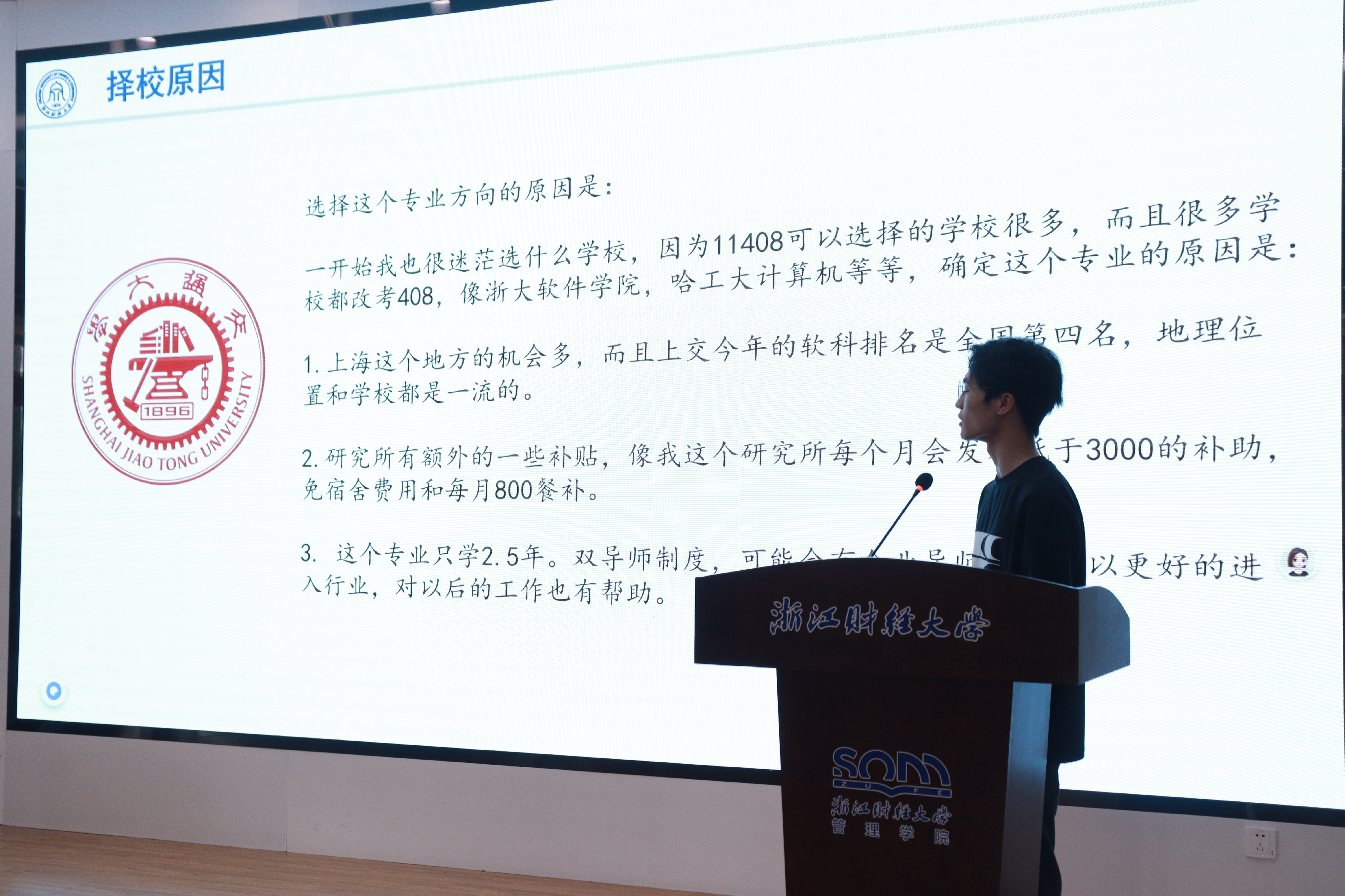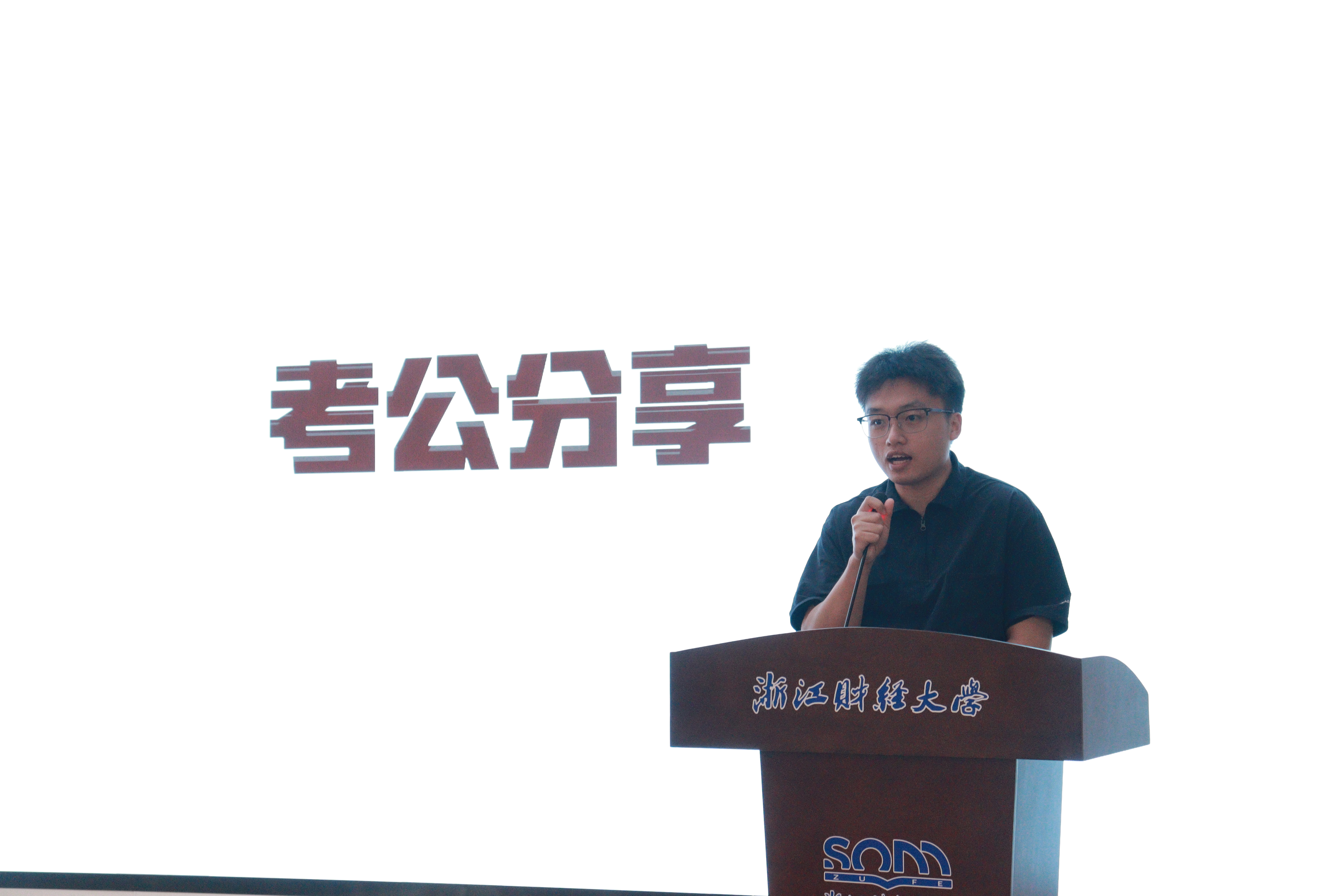 在考研、考公经验分享环节,优秀学长李健乐结合自身备考经历,分享了专业课复习、复试准备等方面的经验;黄锐则围绕考公岗位选择、面试技巧等内容进行讲解,为有考研、考公意向的同学提供了实用建议。