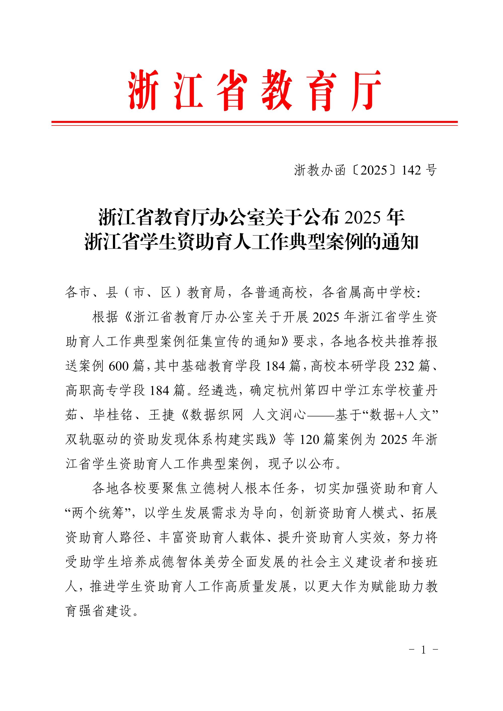 喜报丨我院辅导员工作案例入选2025年浙江省学生资助育人工作典型案例